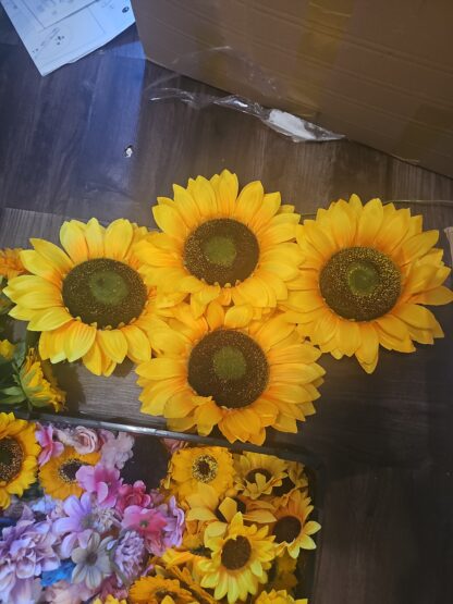 🌻 4 grands tournesols artificiels (fleurs seules, diamètre important, parfaits pour mise en valeur d’un espace ou arche)