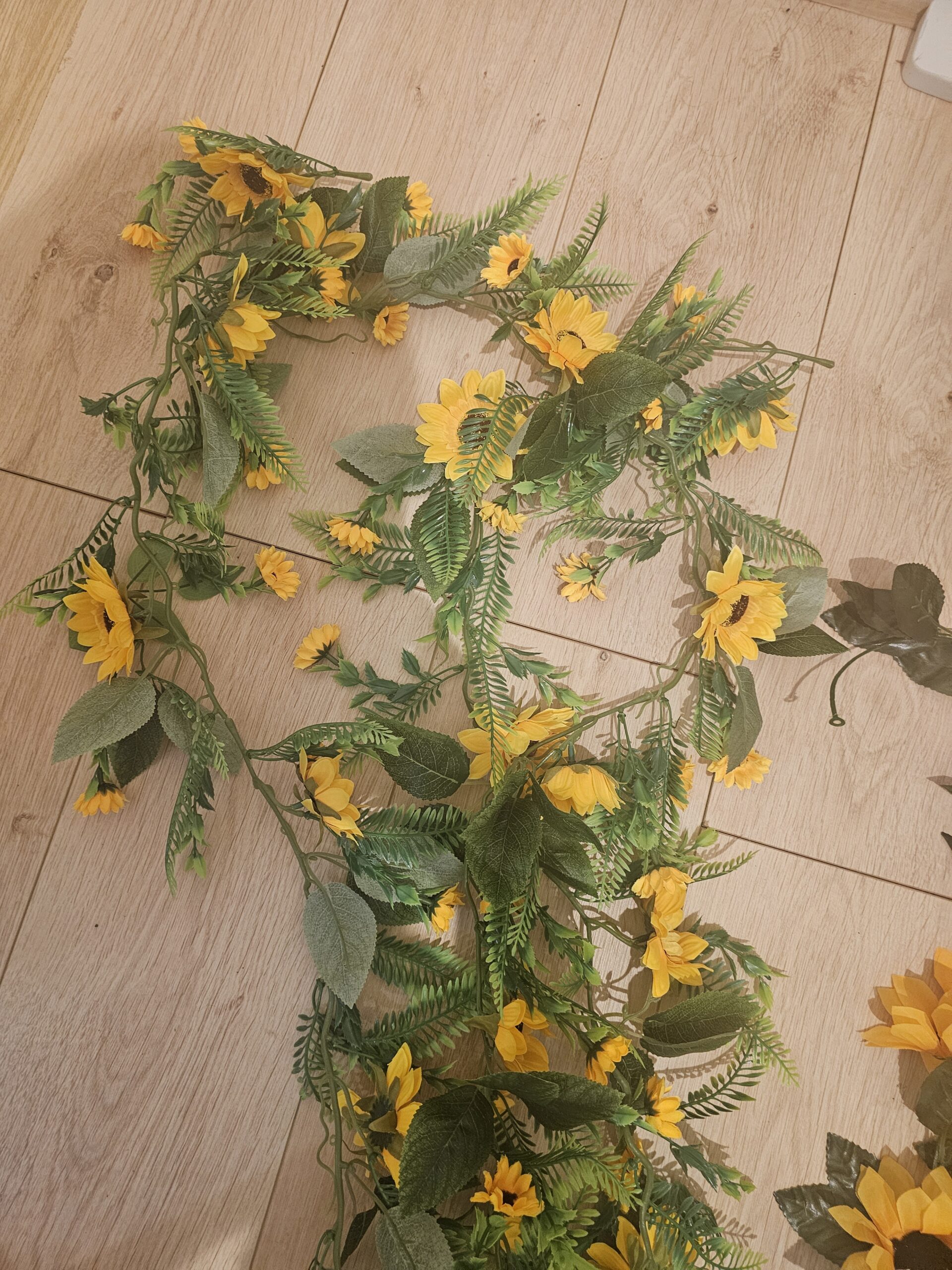 🌻 3 guirlandes de tournesols avec fougères (non lumineuses, effet très naturel)