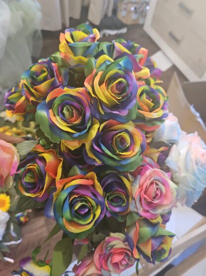 🌈 1 bouquet de roses multicolores (effet arc-en-ciel, très lumineux et original)