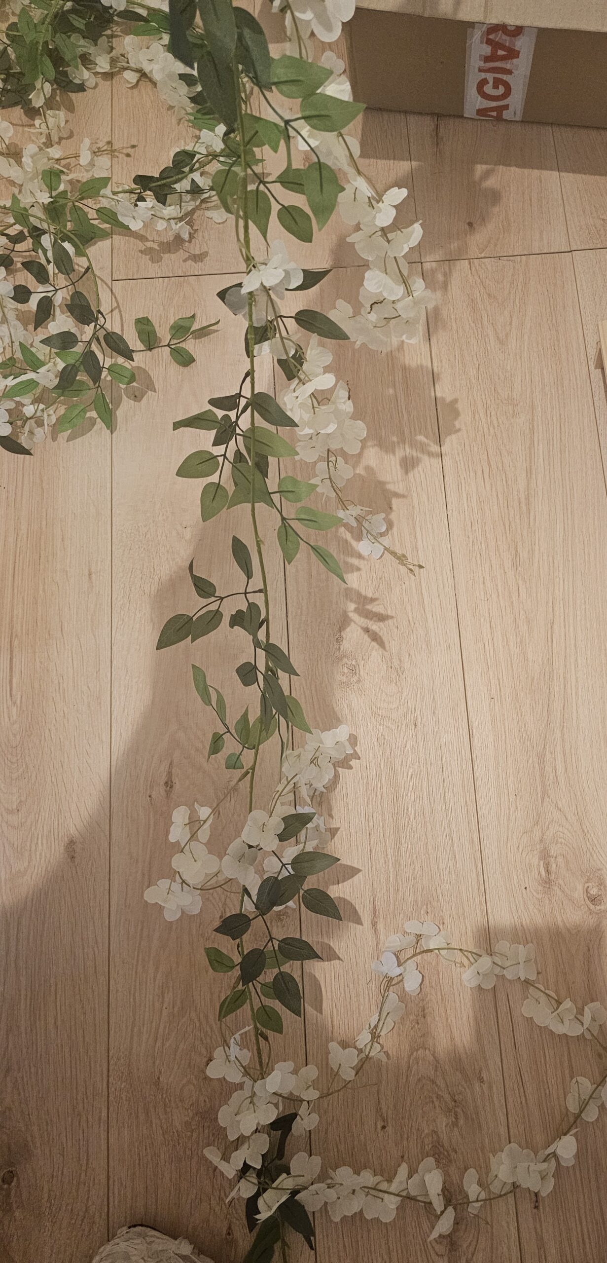 🌿 5 guirlandes fleuries blanches avec feuillage vert (effet glycine / jasmin)