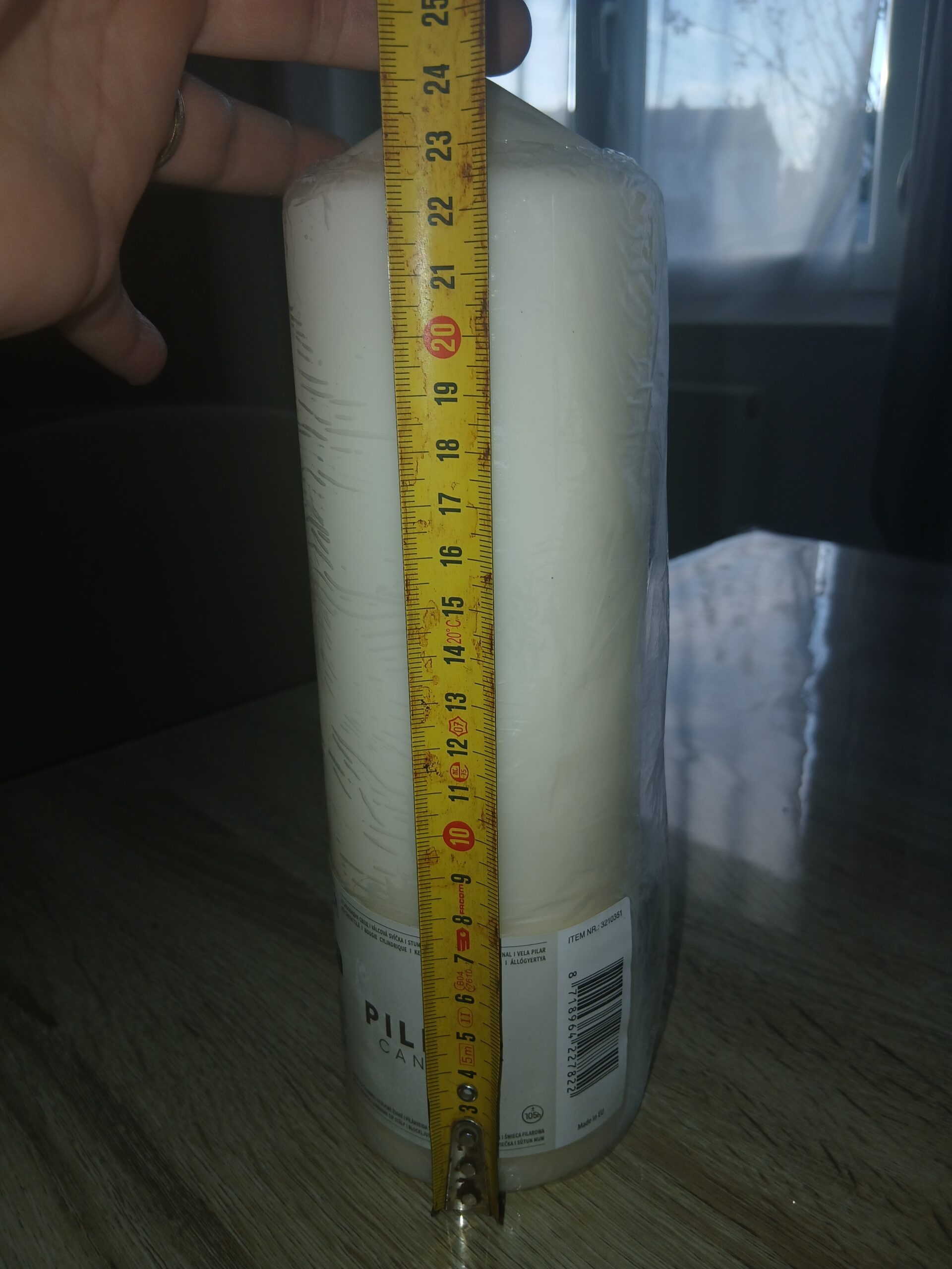 Grande bougie blanche 24cm de hauteur sur 7,5cm de diamètre