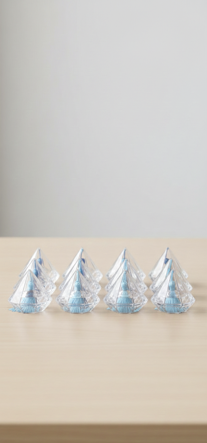 Je mets en vente un lot de 36 boîtes transparentes en forme de diamant, idéales pour apporter une touche de luxe à votre décoration de table ou pour offrir des cadeaux raffinés à vos invités.
