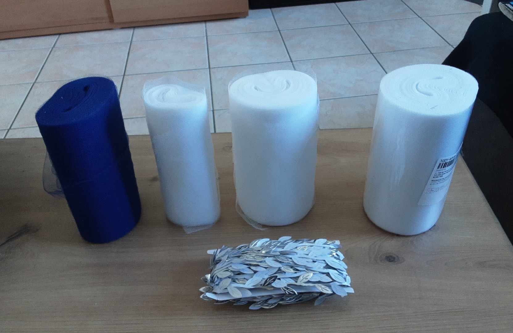 – d’un gros rouleau de tulle bleue – très bonne qualité – neuf