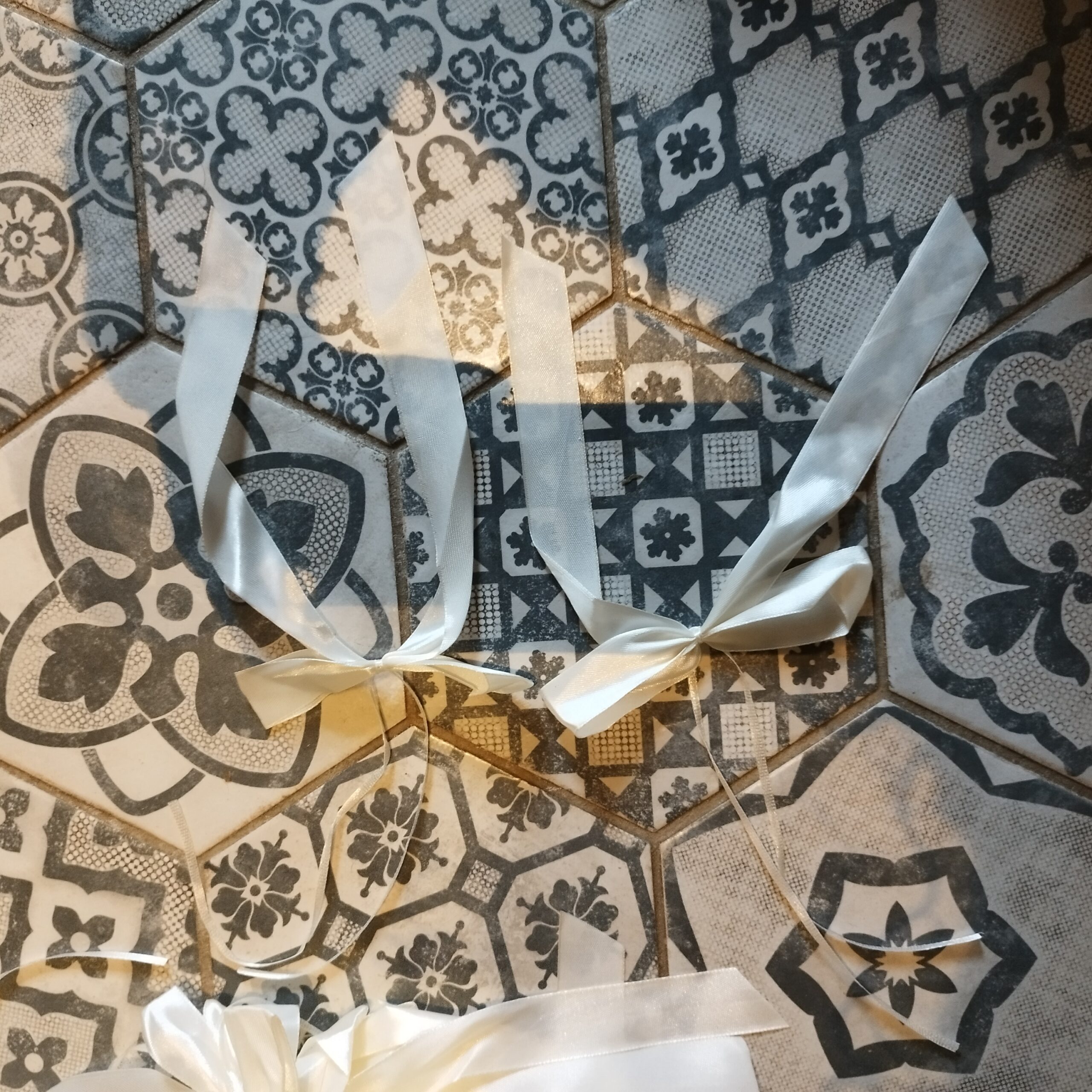 Environ 150 noeuds, couleur crème pour décoration de voiture.