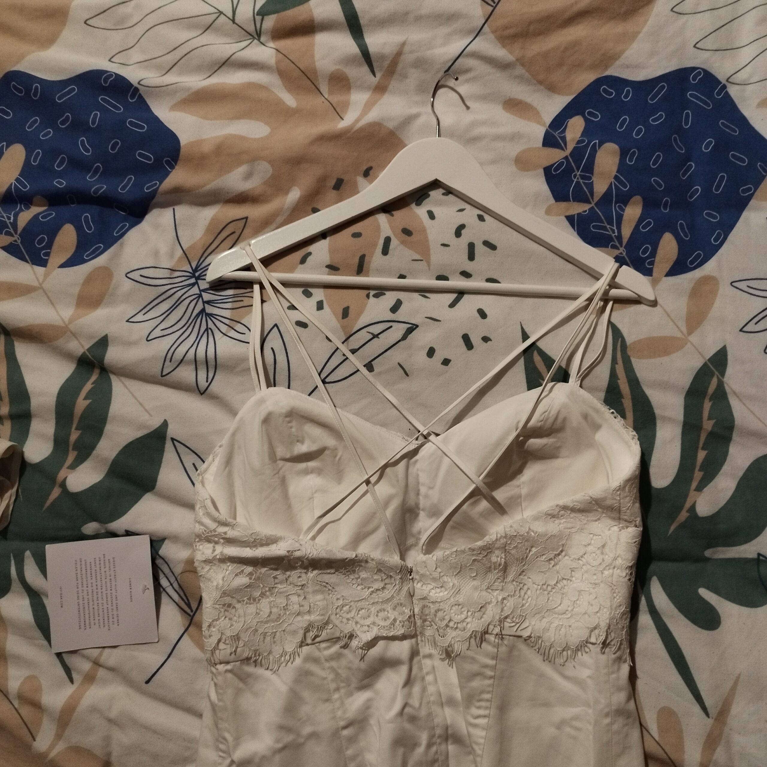 Broderie sur le décolleté. Fermeture au dos. Dos croisé.
