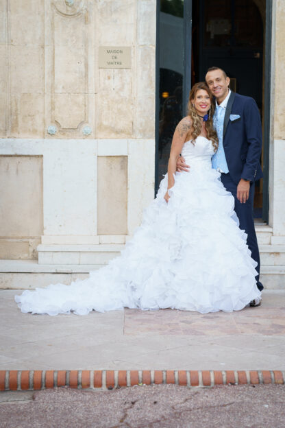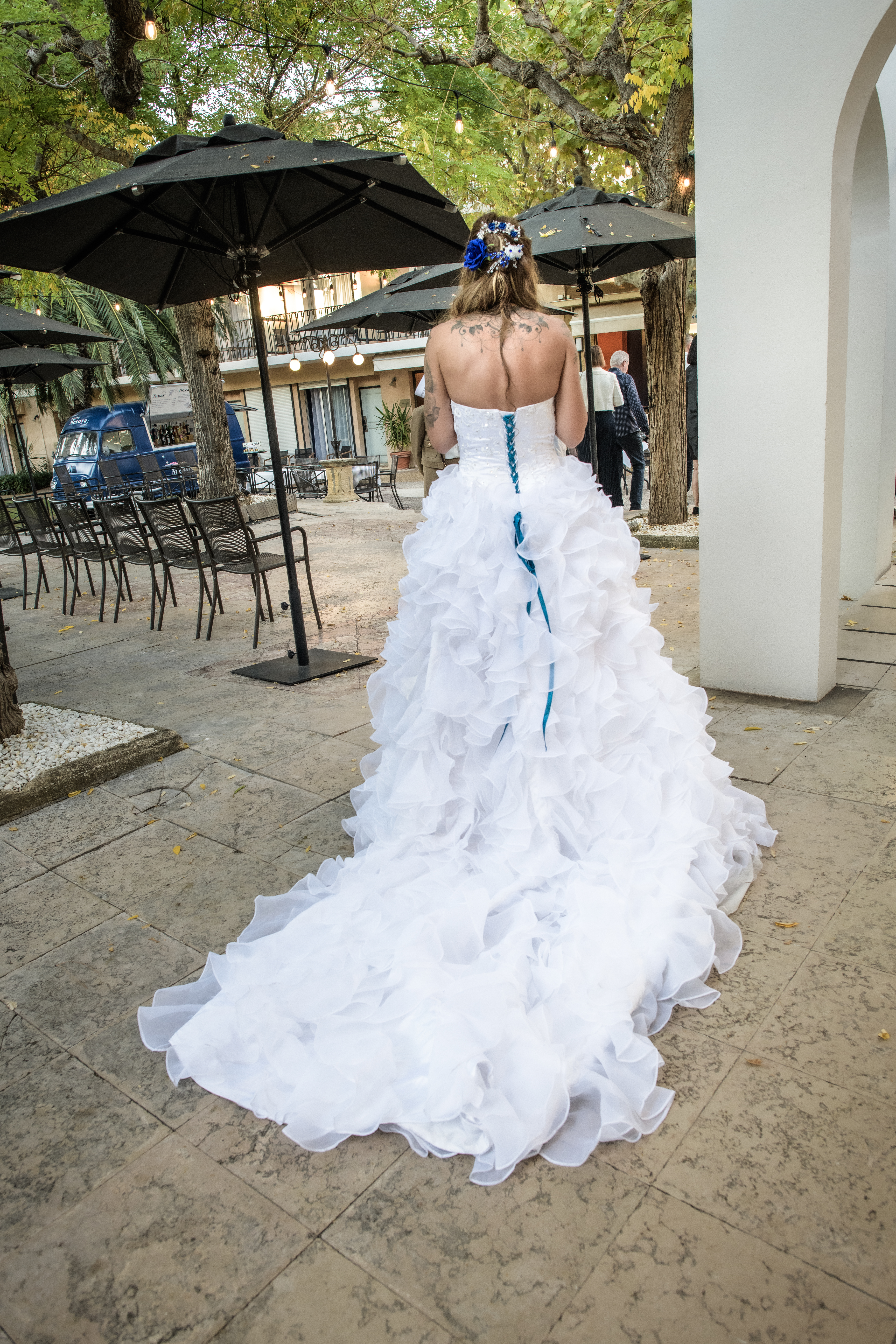 robe de mariee bustier avec lacage dos( en.bleu mais existe en blanc )